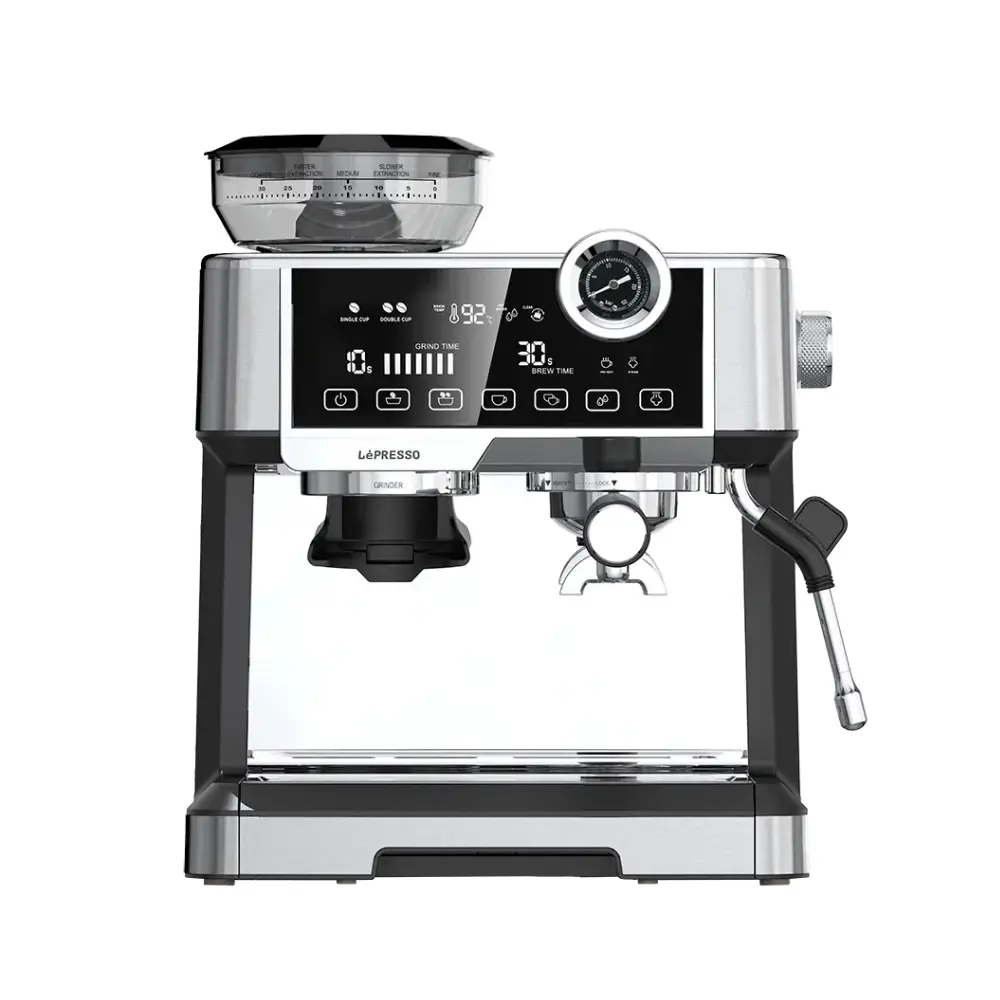 آلة إسبريسو ليبريسو ثنائية الغلاية هي معجزة في صنع القهوة، سواء للاستخدام المنزلي أو الاحترافي. جهد كهربائي 220-240V بتردد 50/60Hz يضمن تشغيل الآلة بكفاءة للحصول على تحضير مثالي. محركات بقوة 110W، وقوة بخار 900W، وغلاية ثيرمو-بلوك بقوة 1300W تضمان كفاءة عالية وآمنة وسريعة داخل آلة الإسبريسو. ضغط المضخة 19 بار يضمن لك إسبريسو غني ومليء بالنكهة في كل كوب. خزان مياه سعة 2.8 لتر وسعة لحبوب القهوة 200 جرام يجعلانها أفضل آلة لتلبية متطلبات أكثر من شخص في الوقت الحالي. التصميم من الفولاذ المقاوم للصدأ يتضمن أيضًا مطحنة مخروطية قابلة لضبط درجة الطحن، وفوهة خفق الحليب لصنع اللاتيه، وسخان للأكواب، كل ذلك للحفاظ على المشروبات ساخنة. الإيقاف التلقائي ميزة إضافية للراحة والأمان، وبالتالي أثبتت ليبريسو أنها تخدم عشاق القهوة بشكل جيد.