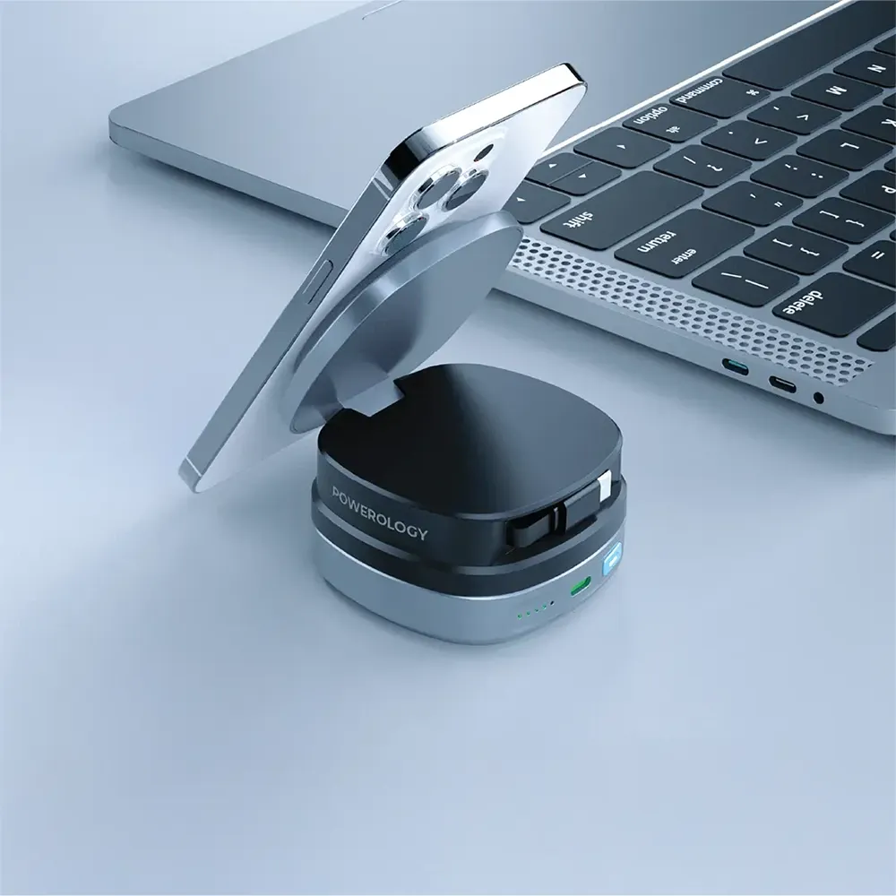 تم تصميم بانك الطاقة Powerology Lyons بسعة 10000 مللي أمبير باللون الأسود ليكون فعالاً للغاية وسهل الاستخدام، مع إمكانية شحن عدة أجهزة في نفس الوقت. ومن بين قدراته تقنية توصيل الطاقة (PD) بقوة 45 واط والشحن اللاسلكي السريع بقوة 15 واط؛ مما يمنح جميع أجهزتك دفعة طاقة سريعة. يمنحك الثبات المغناطيسي القوي الطمأنينة بأن أجهزتك لن تسقط أثناء شحنها. كما خُصص كابل Type-C القابل للسحب من أجل سهولة الحركة، مما يجعل الوصول إلى بانك الطاقة وتخزينه أمراً سهلاً. يتميز بانك الطاقة هذا بحجمه الصغير ووزنه الخفيف، وهو مثالي للسفر. يتوافق Powerology Lyons مع معظم الأجهزة تقريباً ويدعم بروتوكولات شحن سريع مختلفة. وتعني سعة البطارية البالغة 10000 مللي أمبير أنها ستبقي أجهزتك مشحونة طوال اليوم، بغض النظر عما إذا كنت في المنزل أو في حالة تنقل.