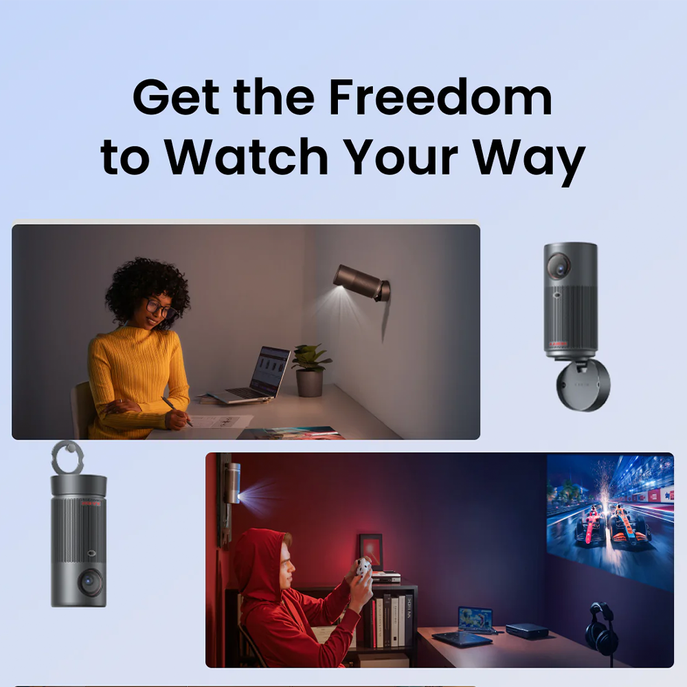 • افتح طرقاً أكثر للمشاهدة مع الملحقات الرسمية: تتيح لك القاعدة التي تُركب بالضغط ضبط زاوية جهاز العرض، أو تثبيته على الحائط، مما يوفر خيارات مشاهدة أكثر مرونة.