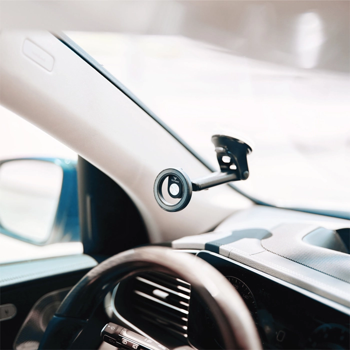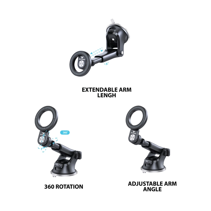 يمكن استخدام حامل السيارة ذو الذراع التلسكوبي وحامل هاتف ماج سيف على النافذة / لوحة القيادة مع قاعدة شفط.