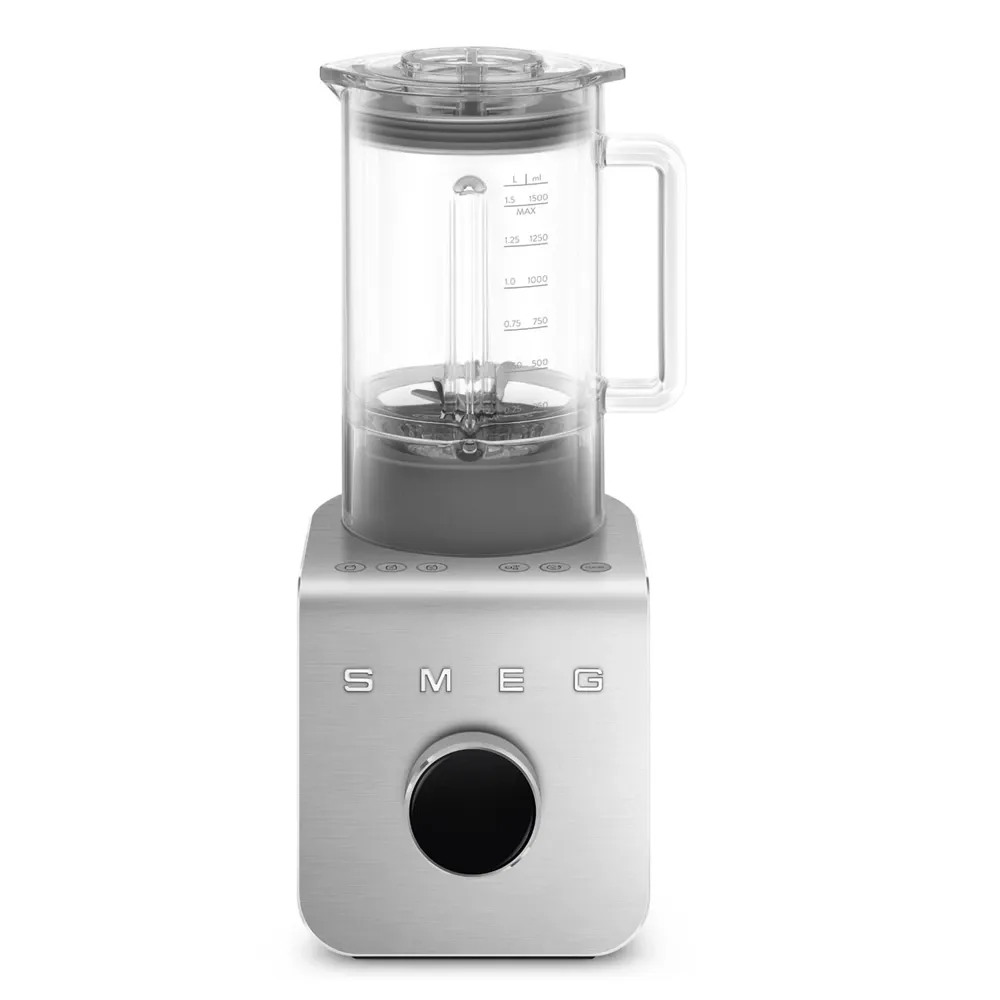 Smeg’s high-performance blender offers endless preparation possibilities with its dedicated automatic programs: Smoothie for creamy fruit drinks or yogurt blends, Green Smoothie for leafy vegetables, Frozen Dessert for fresh spoon desserts, and Ice Crush for cocktails or iced drinks. It also excels in making flours, butters, vegetable milk, and soups, providing versatility for various kitchen tasks.