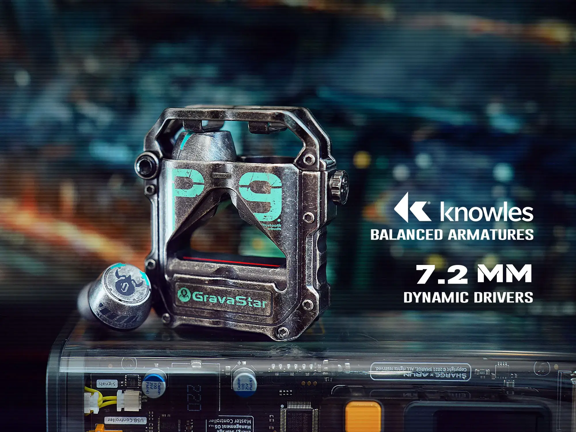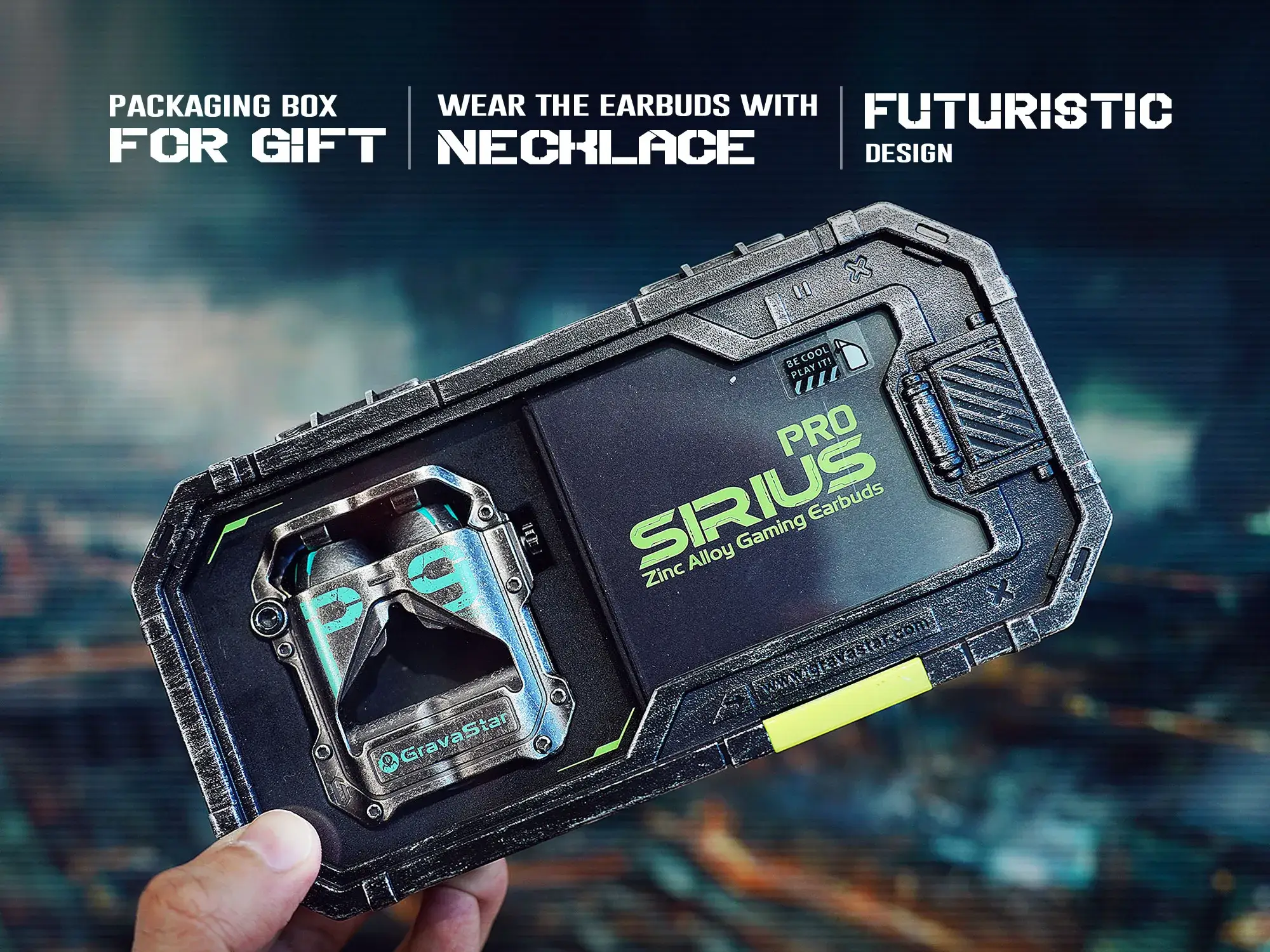 With a cutting-edge, mecha futuristic design, GravaStar Sirius Pro earbuds case is made from zinc alloy, we added handmade crafting into the war-damaged version to make it unique and ultra-durable! With 6 RGB lights and a bottle opener built right into the case, the case features a rugged extra-terrestrial design.