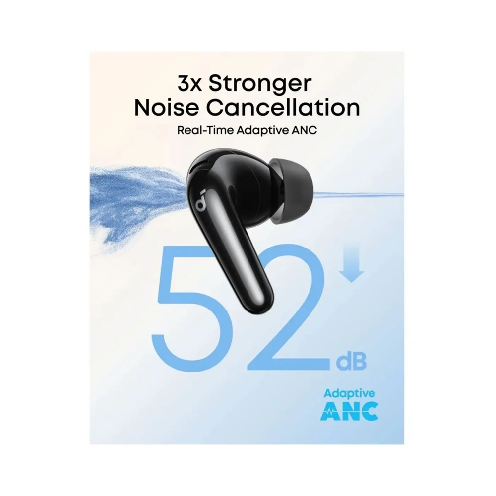 تأتي هذه السماعات مزودة بتقنية إلغاء الضوضاء النشط (ANC) التكيفي الذي يتكيف بذكاء مع البيئة المحيطة، مما يقلل الضوضاء بما يصل إلى 52 ديسيبل لتجربة استماع غامرة.