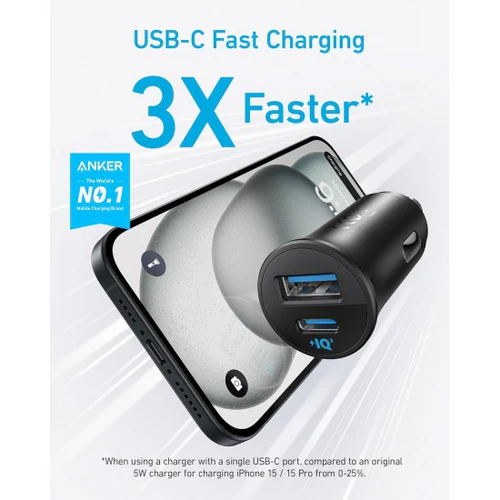 شاحن سيارة أنكر ثنائي المنافذ فائق الصغر بقوة 30W، منفذين – أسود