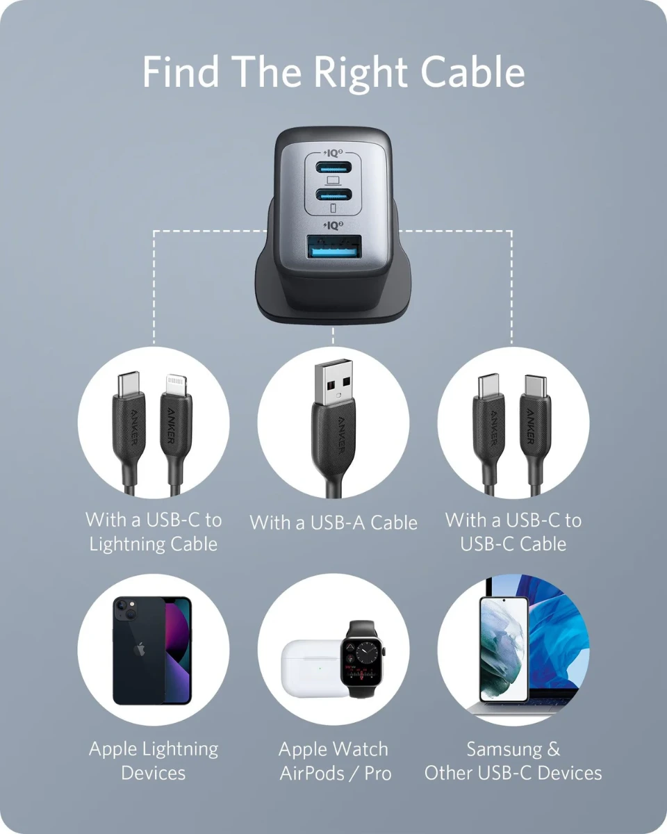 شاحن Anker PowerPort III Pod ثلاثي المنافذ بقدرة 65 واط – أسود