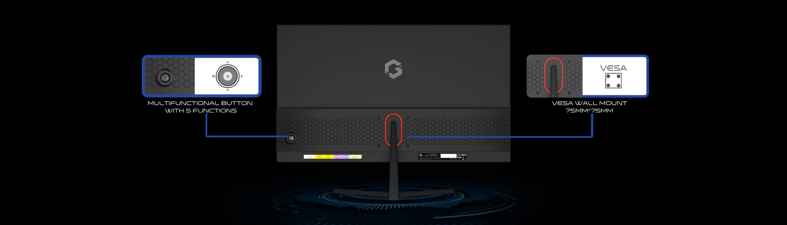 يمكن للزر متعدد الوظائف التحكم في 5 وظائف لتشغيل الشاشة وضبطها بشكل مثالي بما يتناسب مع احتياجاتك. كما يوفر حامل VESA مقاس 75 مم × 75 مم المزيد من الخيارات لتركيب الشاشة