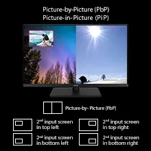 There’s Picture in Picture (PiP) and Picture by Picture (PbP) modes, so you can view two different inputs simultaneously. This helps you fully maximize your display’s on screen area so you get more done quickly.