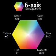 6-axis color control functionality allows advanced users to adjust saturation & hue parameters. Create your own color specifications based on your needs.