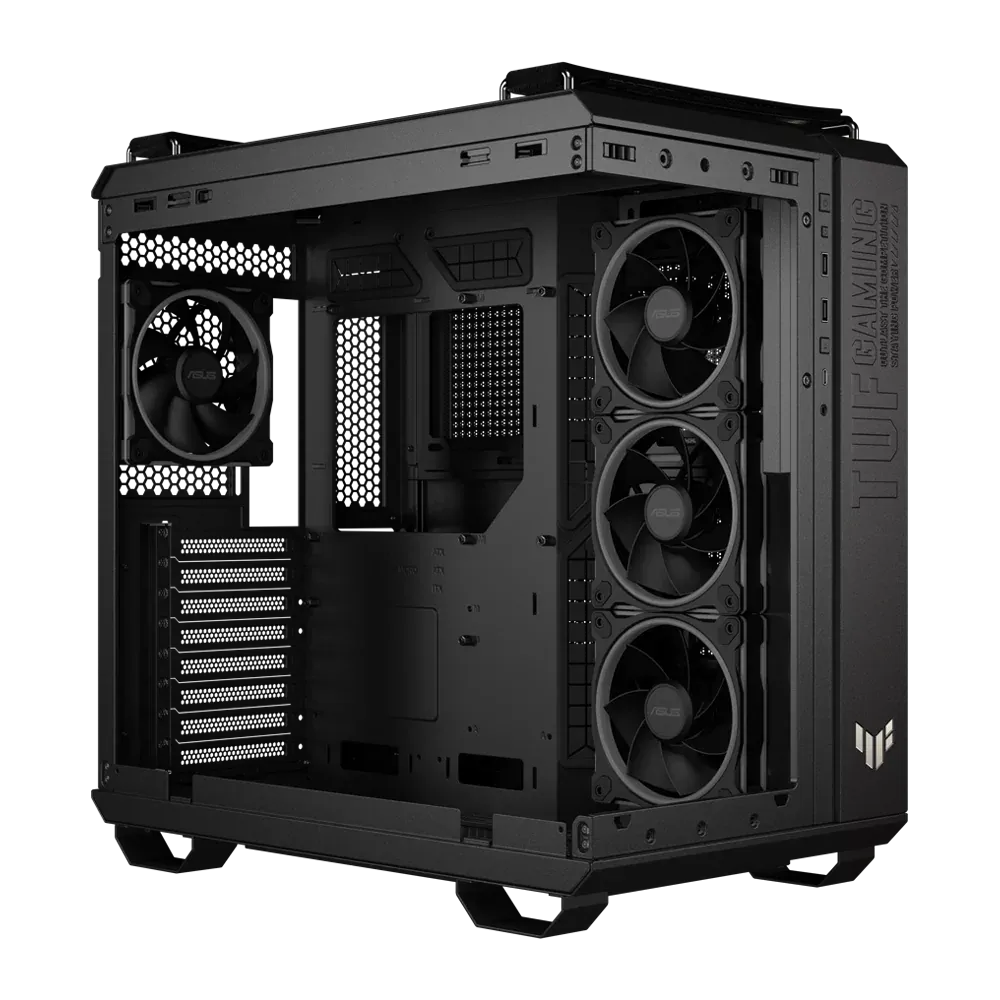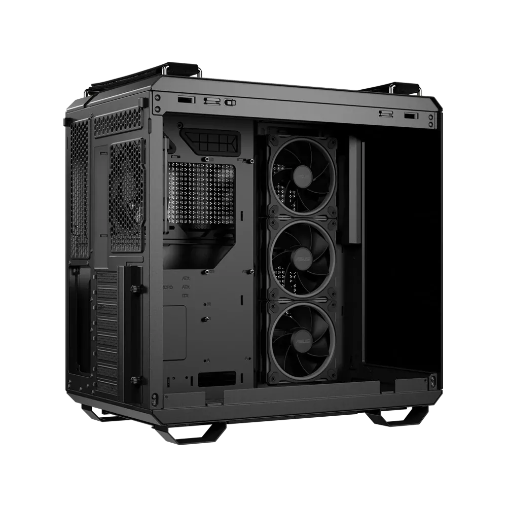 The TUF Gaming GT502 Horizon ARGB continues its PC DIY optimizations with side panels that can be removed simply by pressing a button hidden on the rear of the chassis.