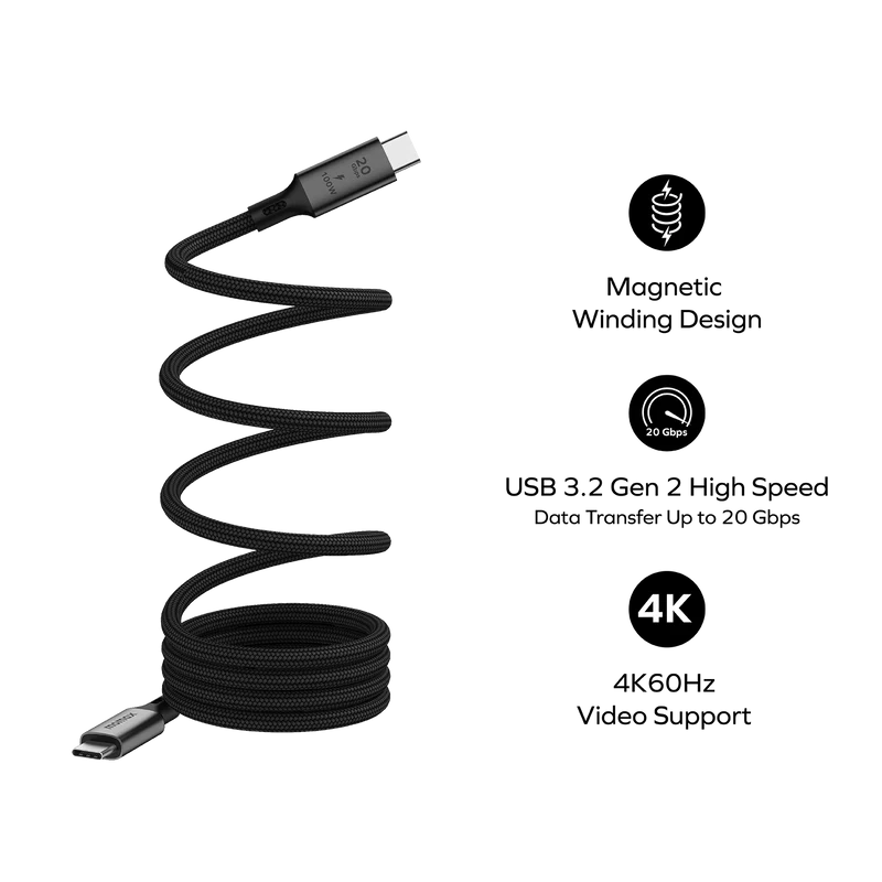 Featuring a innovative magnetic winding design, this Mag.Link Magnetic USB-C cable ensures tangle-free charging and quick 100W power delivery to your devices, from laptops to smartphones. Backed by a reinforced nylon construction for long-lasting durability, this versatile cable combines remarkable speed and reliability to meet all your everyday charging needs.