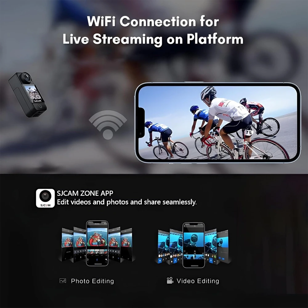The SJCAM Zone App lets you control your camera’s settings and transfer files to your phone for editing. You can even connect to the world’s leading social media for live-streaming and share your joy with millions of viewers.