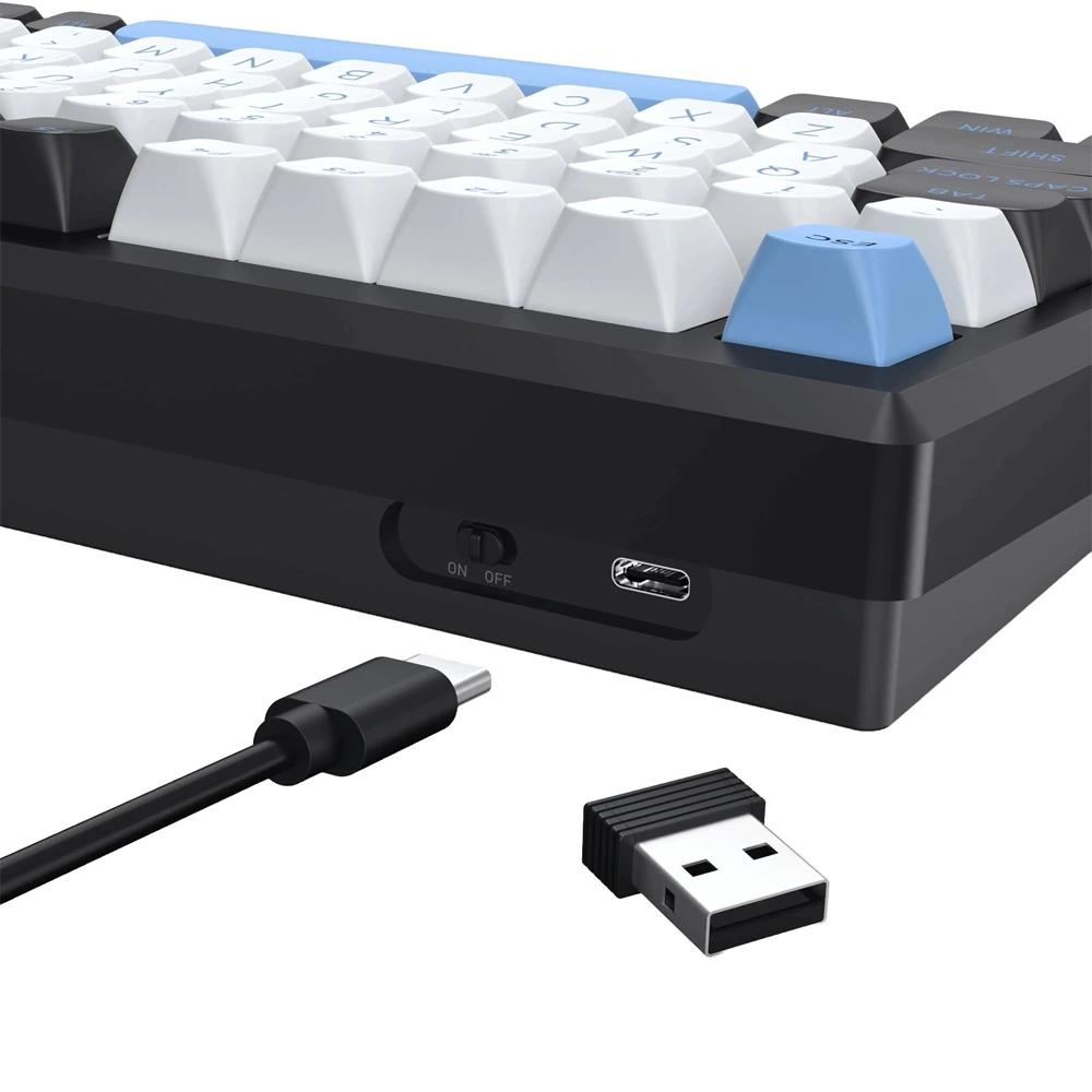 تتميز لوحة المفاتيح الميكانيكية للألعاب هذه بتخطيط مفاتيح قياسي مع إضاءة خلفية نابضة بالحياة ومخطط ألوان أنيق باللون الأسود والأبيض والأزرق. تدعم الاتصال اللاسلكي (2.4 جيجاهرتز وبلوتوث) والسلكي (USB-C) لاستخدام متعدد. مصممة للاعبين، وتوفر أداءً سريع الاستجابة.