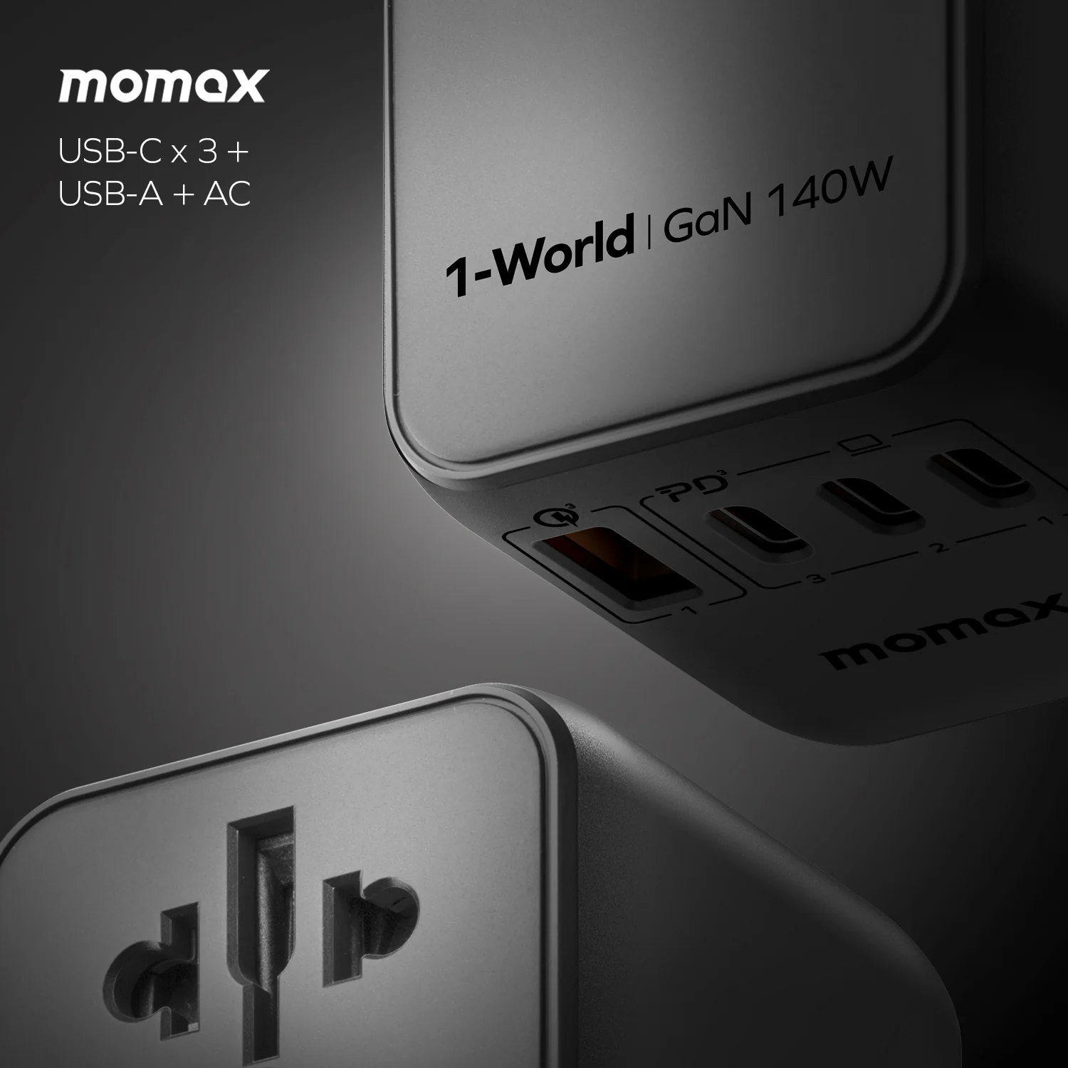 It has 3 USB-C ports, 1 USB-A port, and 1 AC outlet, supporting PD3.1+QC3.0 fast charging standards, allowing you to charge 4+1 devices simultaneously. With this travel adapter, you can use all your devices while traveling with just one adapter. As a travel charger, it is suitable for over 180 countries and has built-in JP/US/CN, AU, EU, and UK plugs. It’s truly a versatile travel charger that can accompany you on your journey around the world!