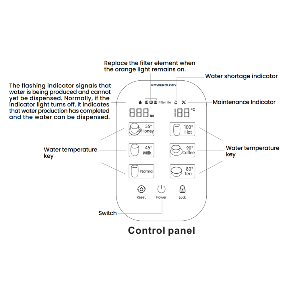 The advanced filtration and efficient performance of the Powerology Reverse Osmosis Water Purifier & Dispenser promises refreshing water in its purest form. It has a rated power of 2000W and can heat water at an 18L per hour. This device purifies and heats water in no time to meet your requirements. A 3L water tank and a 3L waste water tank provide ample storage for clean water. The cleaner has multi-temperature settings, enabling one to have the perfect water temperature, hot or cold, between 4-38°C. Its rated voltage is 220-240V, compatible with most household setups, and a UK 3-pin plug power cord is convenient. This is a compact yet powerful unit that makes installation and operation easy. Whether seeking a reliable dispenser in his home or office, the under-sink reverse osmosis purifier has superior purification performances and can handle 2000L of rated purification.