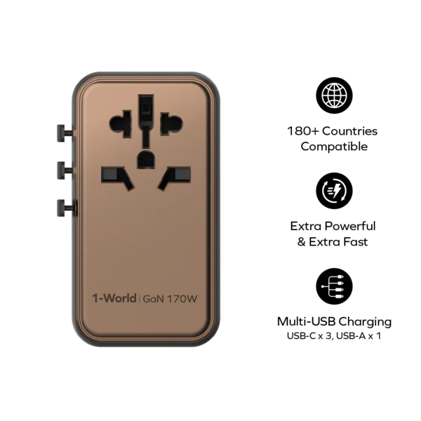 Momax 1-world 170w 4-port Travel Adaptor – Desert Titanium