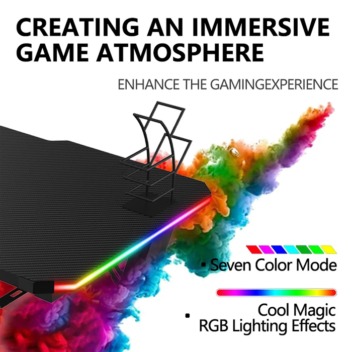 Gamvity Z-shaped (140x60x73)cm Gaming E-sports Desk With Led Rgb Light – Black Zp3-1400