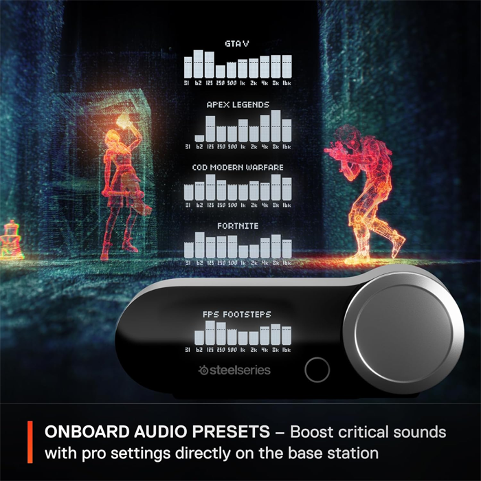 Amplify footsteps, reloads, or whatever helps you win. Hyper-custom audio curves allow complete control over every aspect of sound, so you highlight exactly what you need to hear.