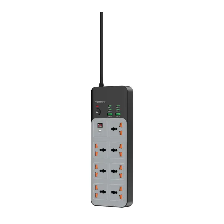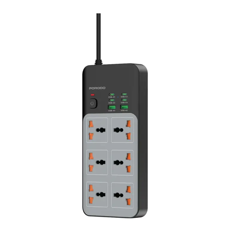 Porodo 3000W | 6AC Universal Power Strip with 6 USB Ports (4C + 2A) – Gray