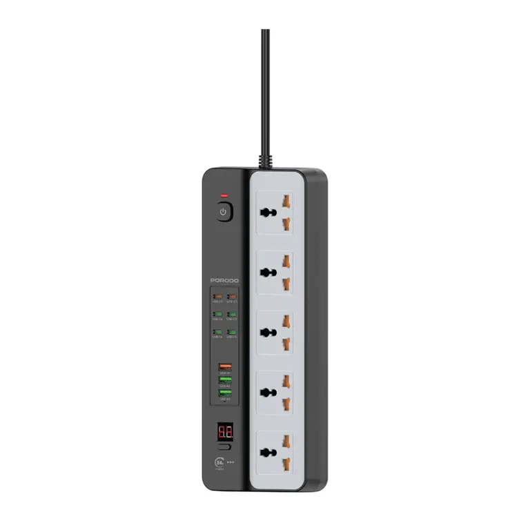 Porodo 3000W | 5AC Universal Power Strip with 9 USB Ports (6C + 3A) – Black