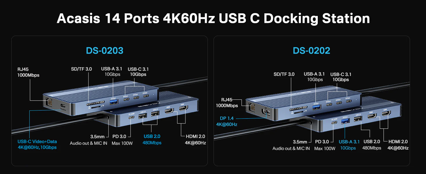 Acasis 14 Ports 4k 60hz Usb C Docking Station With Pd 100w Charging