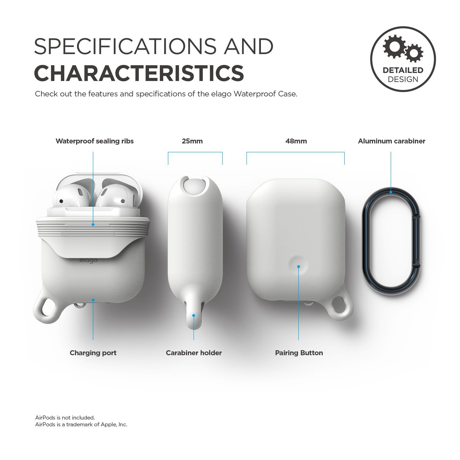 The liquid/dust seal design provides layers of protection that water and dust cannot get past. The charging port cap creates an incredible seal just like the rest of the layers of protection. Have peace of mind knowing that your AirPods are safe when things get a little messy!