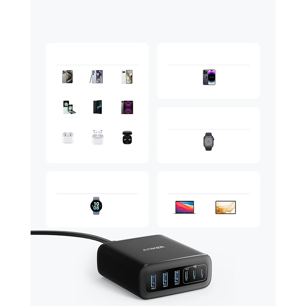 - 6-in-1 Charger for All:Â Designed for modern needs, this charger can power your entire digital lineup, from laptops to smartphones, all at the same time. Note: 30W charging is limited to the USB-C1 port for MacBook Air.