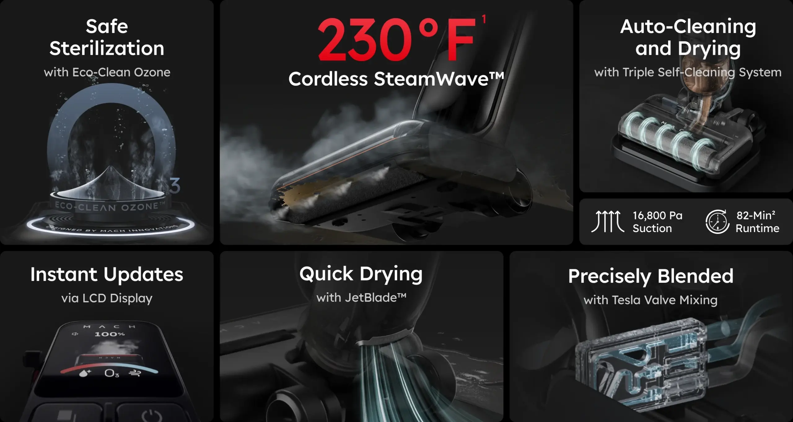 • Vacuum, Mop, and Steam: All-in-one design for complete floor cleaning.