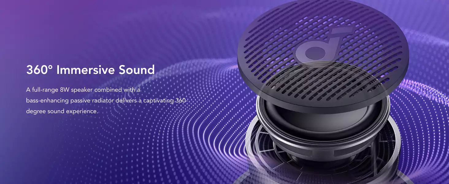 • 360-Degree Dynamic Sound: This portable speaker features an 8W speaker with a single passive radiator to provide 360-degree dynamic sound in a compact package.