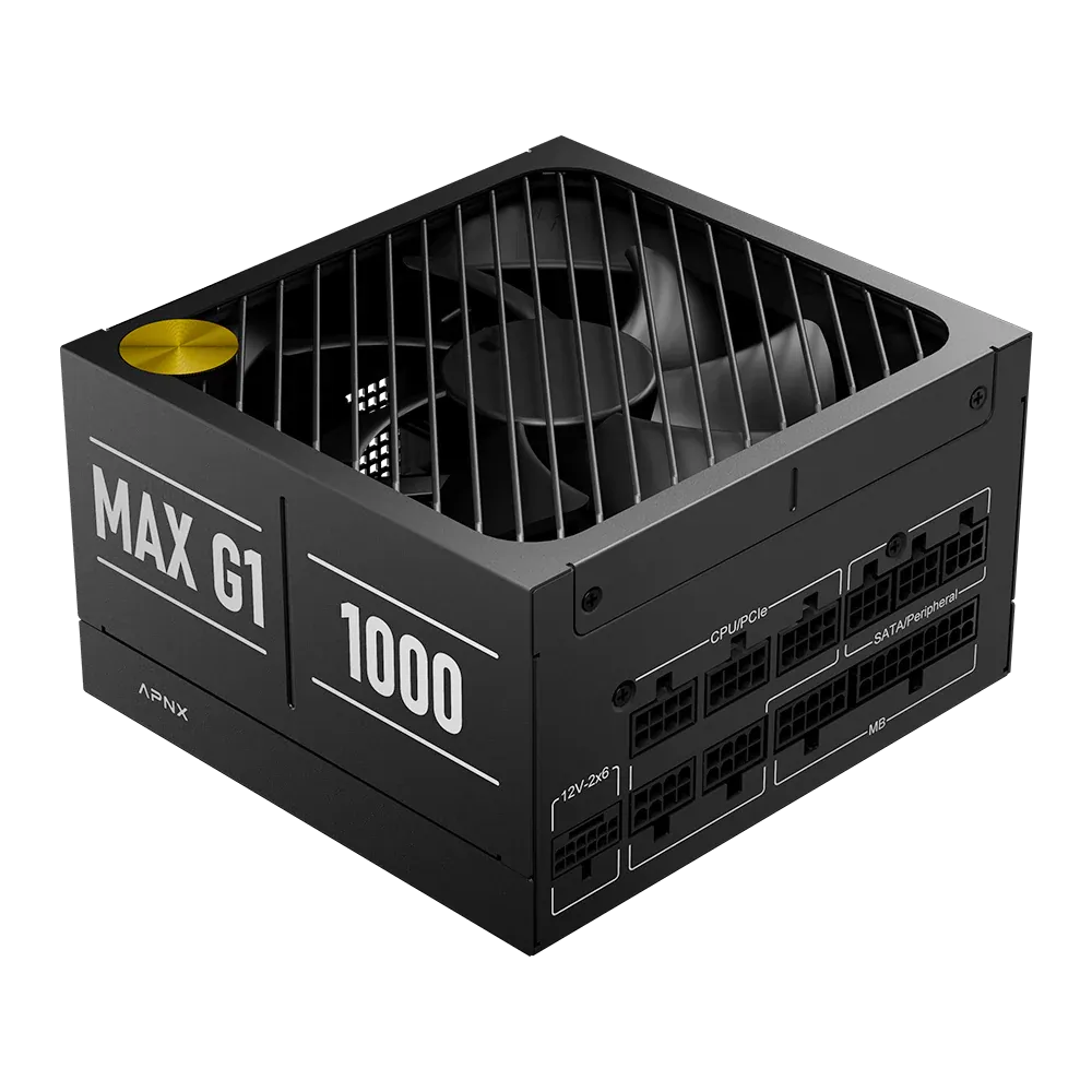 The APNX MAX G1 is a premium AC-to-DC switching power supply, fully compatible with Intel ATX 3.1 multi-rail desktop platforms. It features Active Power Factor Correction (APFC), a resonant converter, and synchronous buck DC-to-DC conversion for stable 3.3V and 5V outputs. Certified 80 PLUS Gold and Cybenetics Platinum for exceptional real-world efficiency, the MAX G1 also includes a Zero RPM switch for silent operation during low loads. Its fully modular design allows for clean, customizable cable management, making it the perfect choice for high-performance, clutter-free builds.
