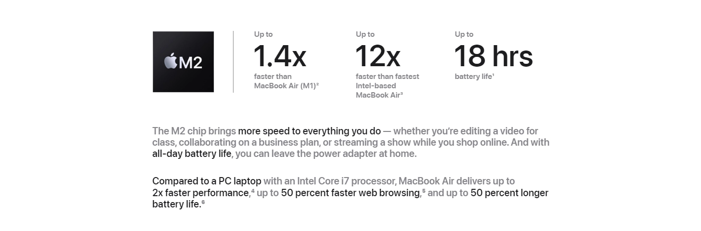 • Apple M2 chip with 8‑core CPU, 10‑core GPU, 16‑core Neural Engine
