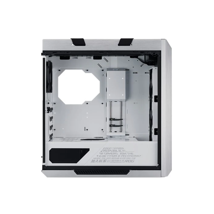 ROG Strix Helios White Edition is a premium mid-tower gaming case with three tempered-glass panels, a silver-white aluminum frame and integrated front-panel RGB lighting. Built-in cable management, including a multifunction cover with GPU braces, keeps the interior sharp and tidy. Engineered for expandability and performance, it’s ready for an up to EATX motherboard and serious water-cooling setups – making it the perfect choice for a unique white ROG showcase build.