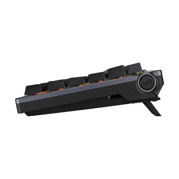 ROG PBT doubleshot keycaps provide a unique and premium feel, as well as offer long-lasting durability. Key design has been optimized with mid-height keycaps (similar to Cherry profile keycaps) and a shorter stem to reduce key wobble, and provide a more comfortable user experience.