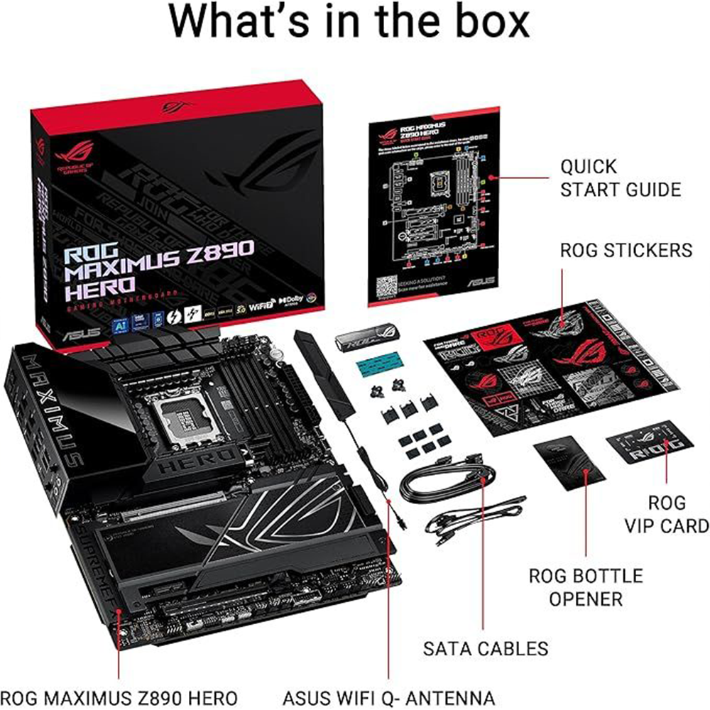 Asus ROG MAXIMUS Z890 HERO Intel Z890 LGA1851 DDR5 8800 6x M.2 WiFi 7 BT Thunderbolt 4 USB4 5Gbit 2.5Gbit LAN NitroPath DRAM 22122 Power Phases AI OC ATX Motherboard