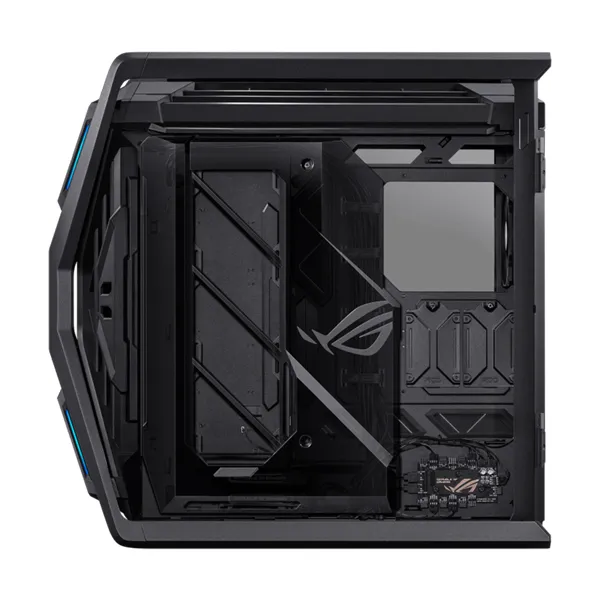The ROG Hyperion frame is constructed of rugged aluminium alloys forged into a distinctive X that extends from the center of the chassis all the way out to its perimeter. It’s rigid structure doubles up as carry handles capable of bearing up to 80 kg of hardware.