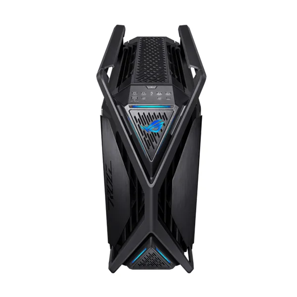 ROG Hyperion GR701 E-ATX computer case, 420 mm dual radiator support, four 140 mm fans, metal GPU holder, component storage, ARGB fan hub, 60W fast charging.