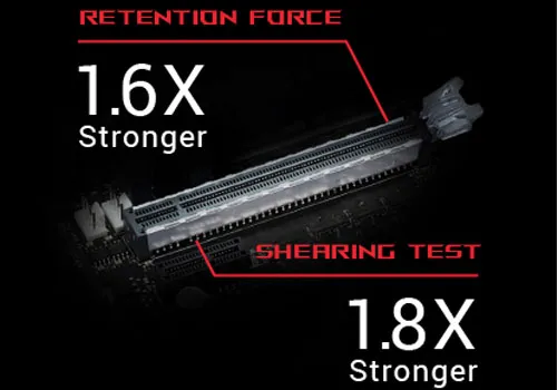 Asus Patent Safeslotâ„¢ Design Makes Sure Your Graphics Card Connection Is More Stable And Safe. Featuring A New Single-Step, Insert-Molding Manufacturing Process That Integrates Fortifying Metal And Additional Solder Points, Safeslotâ„¢ Provides Stronger Pcie Device Retention And Greater Shearing Resistance.