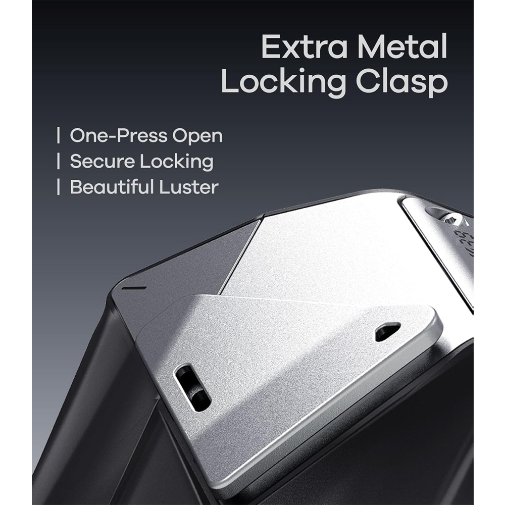 • Zinc alloy lock clip, secure the case closed all the time.