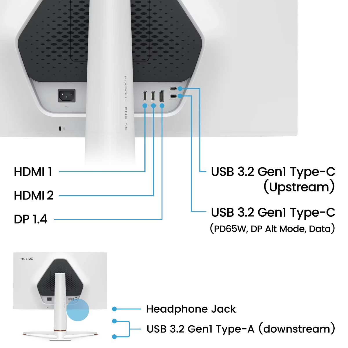 • USB Type-C Upstream (USB 3.2 Gen 1, 5 Gbps, Data only) : 1