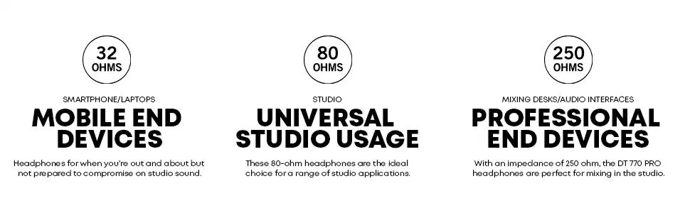 The DT 770 PRO headphones remain the top choice for music producers, sound technicians and broadcast users and are a firmly established piece of equipment in studios worldwide. These headphones are particularly appealing to professionals owing to their bass reference capabilities, but also because of the spacious reproduction that is absolutely remarkable for closed headphones.