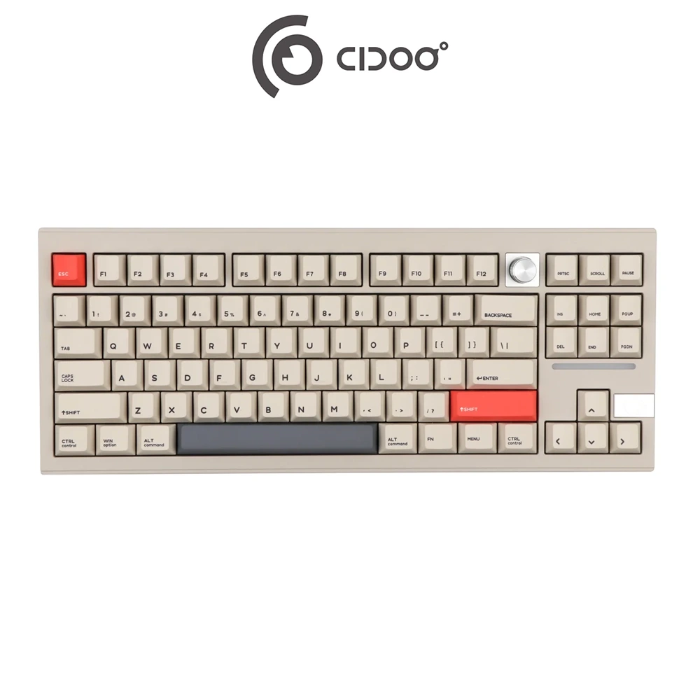 The metal rotary knob with RGB light of the CIDOO V87 mechanical keyboard provides both style and functionality. It allows for easy volume and brightness adjustment while adding a unique and personalized look to your setup. The RGB light can be customized to your liking, allowing you to choose from a variety of colors and lighting effects. This feature adds a unique and personalized touch to the keyboard, making it stand out from other mechanical keyboards on the market.