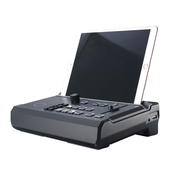 Proprietary iPad or Android tablet app makes image and overlay editing, program previewing, and scene transitioning quick and easy