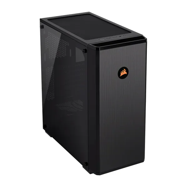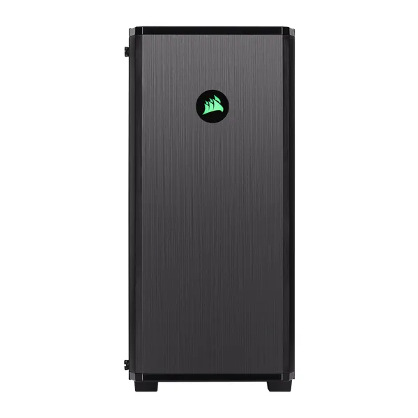 Defined by a streamlined design and a front-facing CORSAIR logo backlit by an RGB fan with six customizable RGB LEDs.