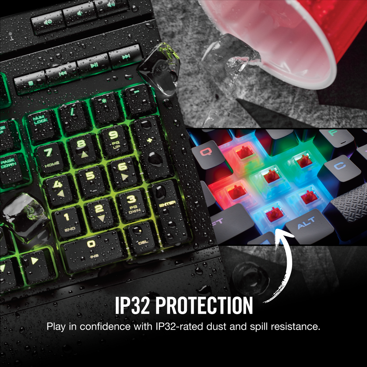 per-key RGB backlighting, up to IP32 water and dust resistance and