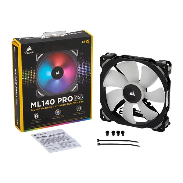 Available in as a single fan, control lighting effects and airflow in CORSAIR iCUE and add the finishing touches with replaceable corner caps (sold separately). The RGB functionality of ML140 PRO RGB requires an RGB lighting hub and Lighting Node PRO.