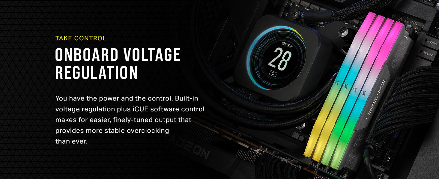 • Onboard Voltage Regulation: Enables easier, more finely-tuned, and more stable overclocking through CORSAIR iCUE software than previous generation motherboard control.