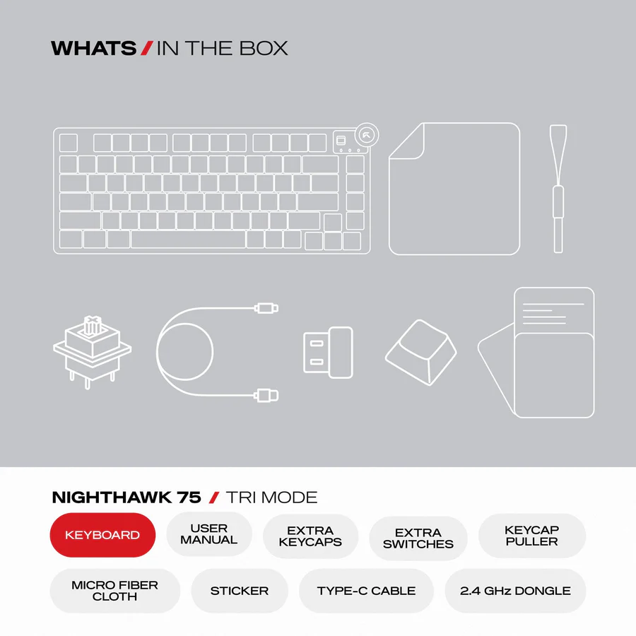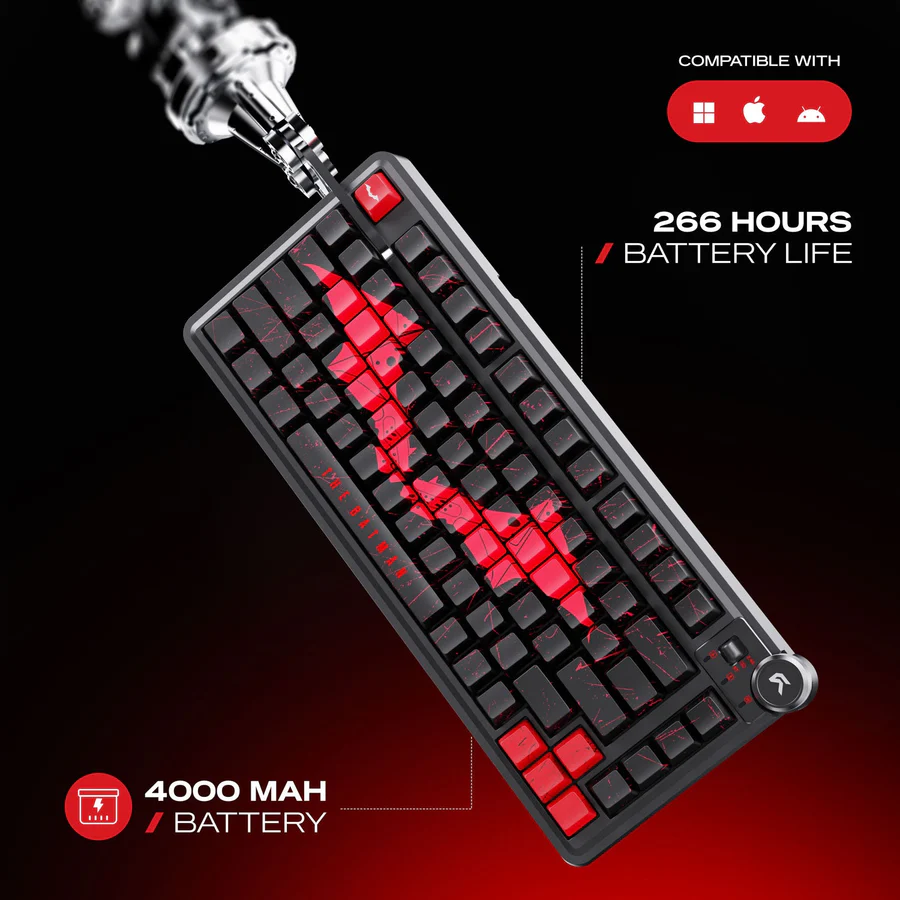 Powered by a 4000mAh battery, the Nighthawk 75 ensures extended usage, whether you’re gaming, working, or switching between devices. With hot-swappable support and upcoming customization software, it’s built for enthusiasts who want flexibility and performance in one stylish package.