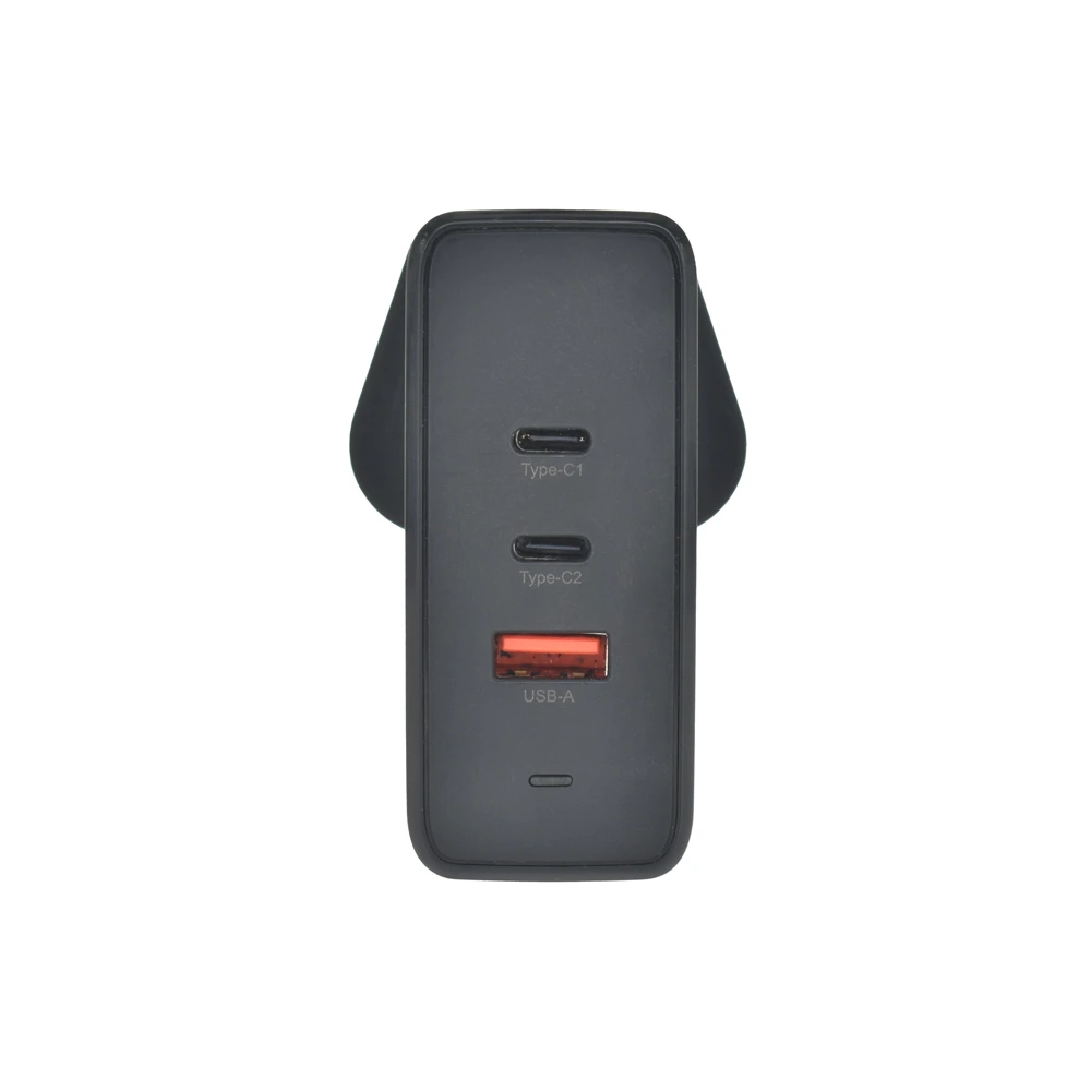The Dviced Wall Charger 140W GaN is a compact, high-performance charger with three ports: two USB-C and one USB-A, for fast charging of multiple devices. It features a UK standard plug, ideal for the UK and similar regions.