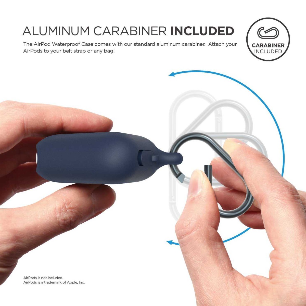 The AirPod Waterproof Case comes with our standard aluminum carabiner. Attach your AirPods to your belt strap or any bag!