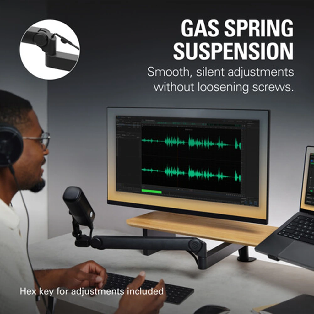 A sturdy all-metal build with interchangeable hinge caps, and all-new suspension technology for ultra-smooth, ultra-quiet adjustments. Mic Arm Pro makes our premium mounting solution even better.THE MIC ARM FOR PROS