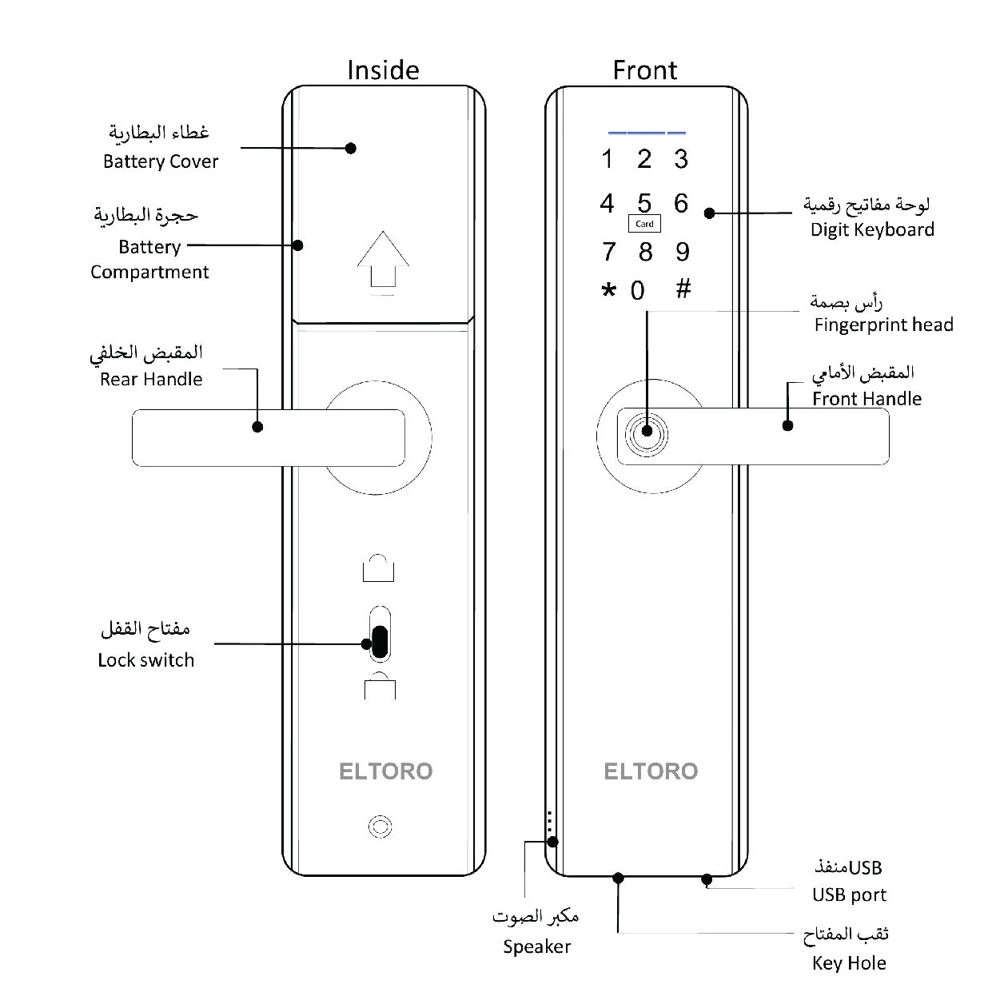 Eltoro Smart Lock recognizes your fingerprint in just 0.3 seconds, and unlocks your door in 1 second. It’s faster than fumbling for your keys. Suitable for VPC, WPC wooden doors It is not recommended to use the lock for external doors and exposure to high heat.